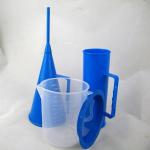 泥浆三件套的流出管为孔径5毫米,长100毫米的铜管,清洁的水700立方厘米注入粘度计,而流出500立方厘米所需的时间为15秒,有隔层的量杯其一端的容量为500立方厘米;另一端的容量为200立方厘米